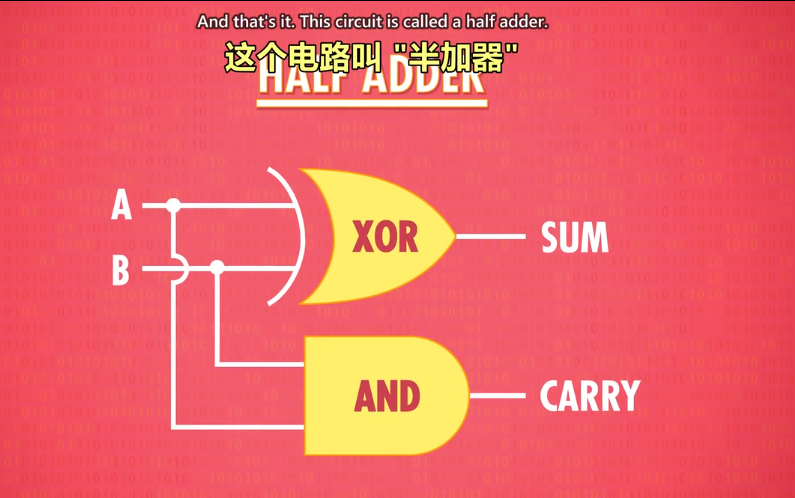 - 半加器 (处理1个 bit,2个输入) 输出”总和”和”进位”