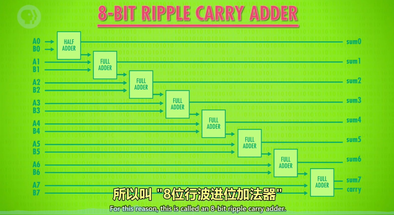 - 缺点是每次进位都要一点时间但如今的量级是每秒几十亿次运算,所以会造成影响,所以,现代计算机用的加法电路有点不同,叫 “超前进位加法器”
