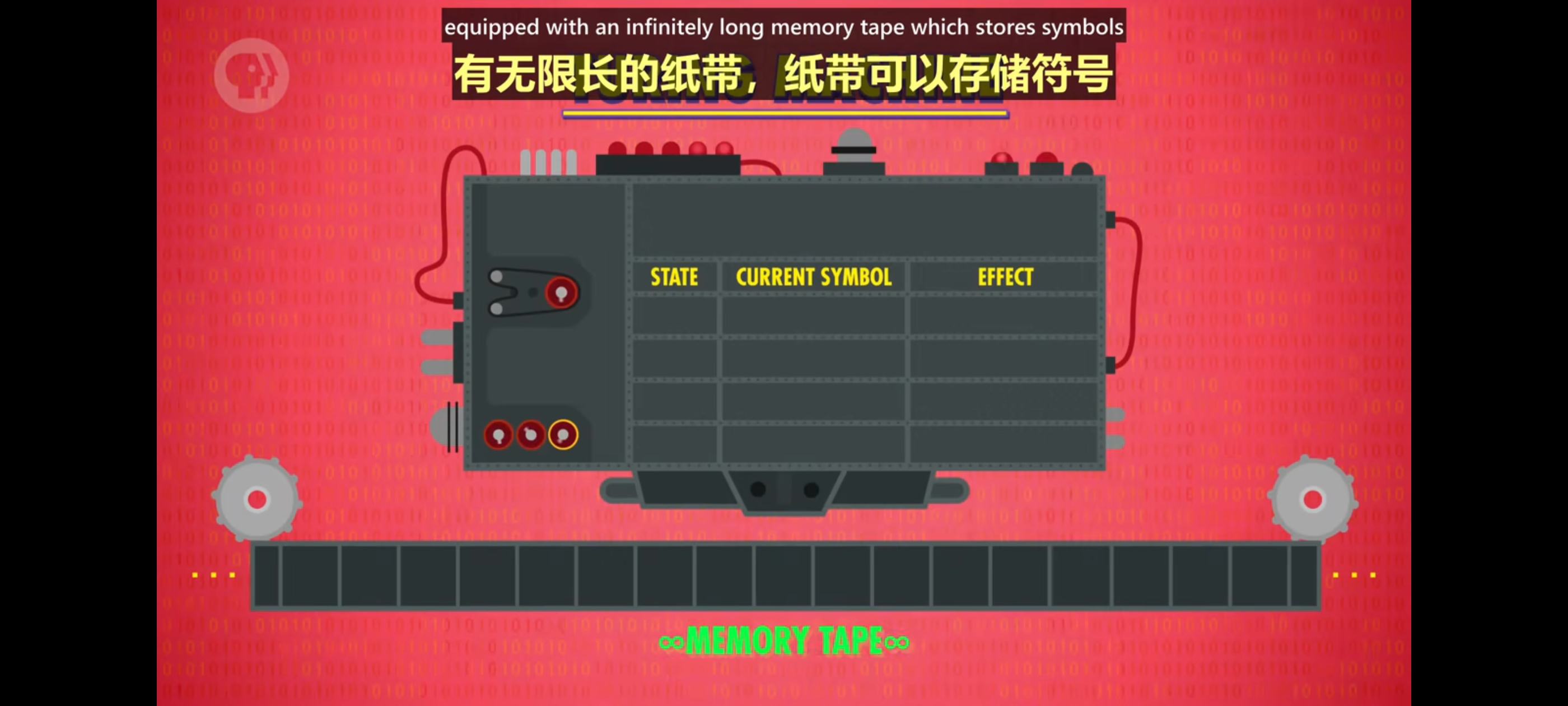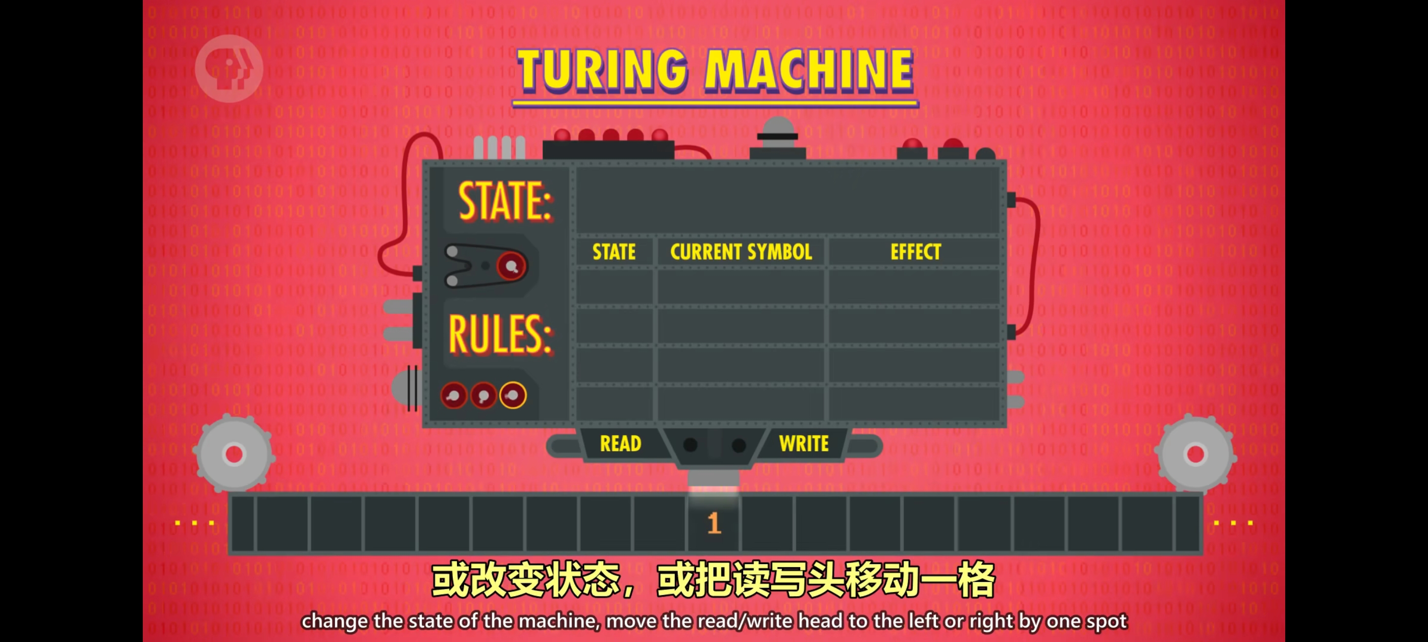 - 图灵提出了一种假想的计算机,现在叫“图灵机”。图灵机是一台理论计算设备,有一个状态变量保存当前状态,一组规则描述机器着什么,可能是在纸带写入一个符号,或把读写头移动一格,或执行这些动作的组合。