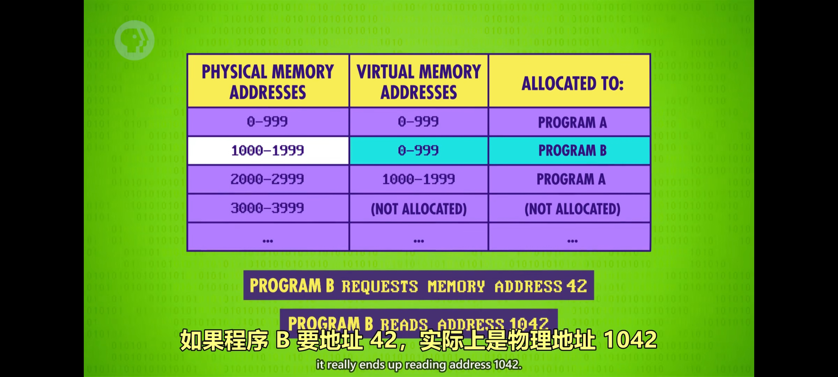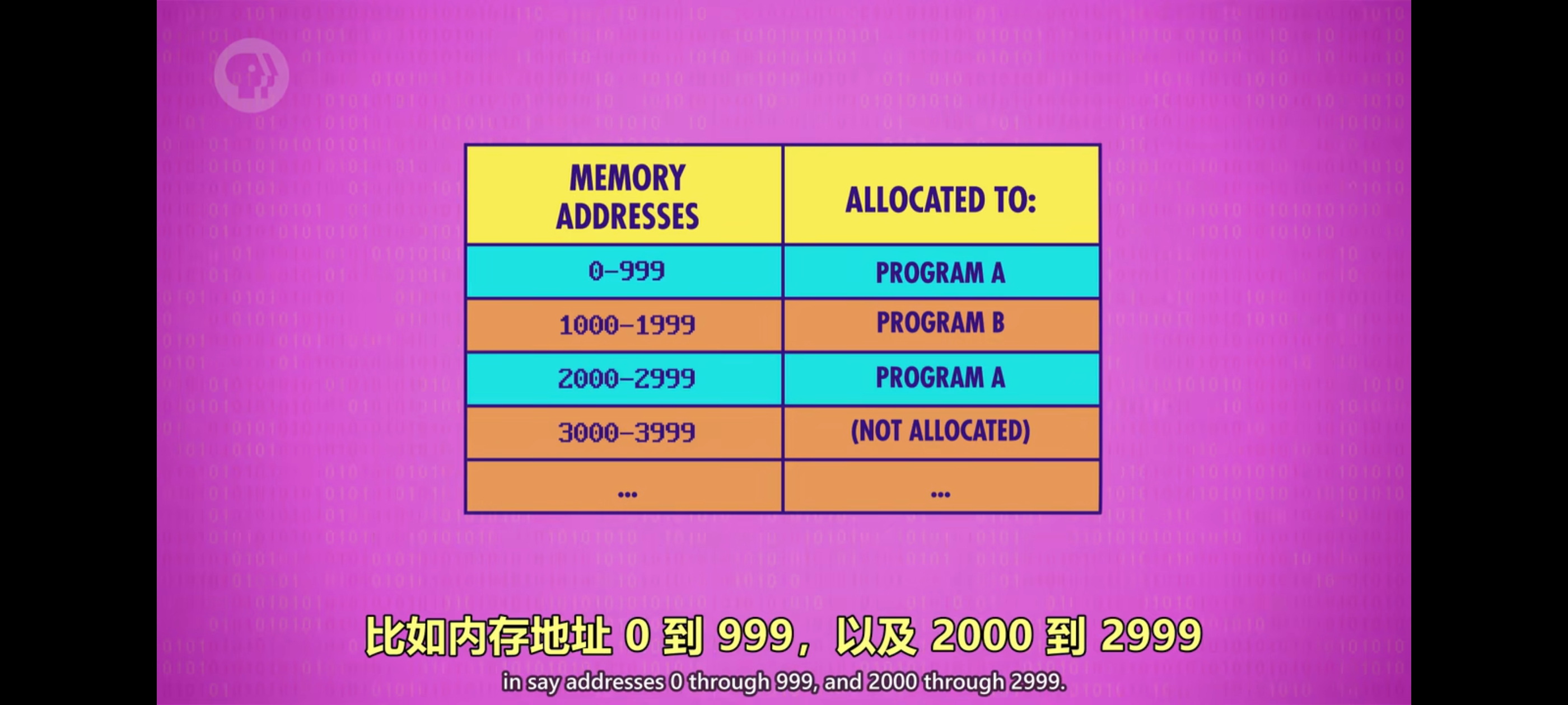 同时运行多个程序会有一个问题,每个程序都会占一些内存,当切换到另一个程序时,我们不能丢失数据。解决方案是给每个程序安排一个专属内存块,举个例子,假设计算机一共有 10000 个内存位置,程序 A 分配到内存地址 0 到 999,而程序 B 分配到内存地址 1000 到 1999,