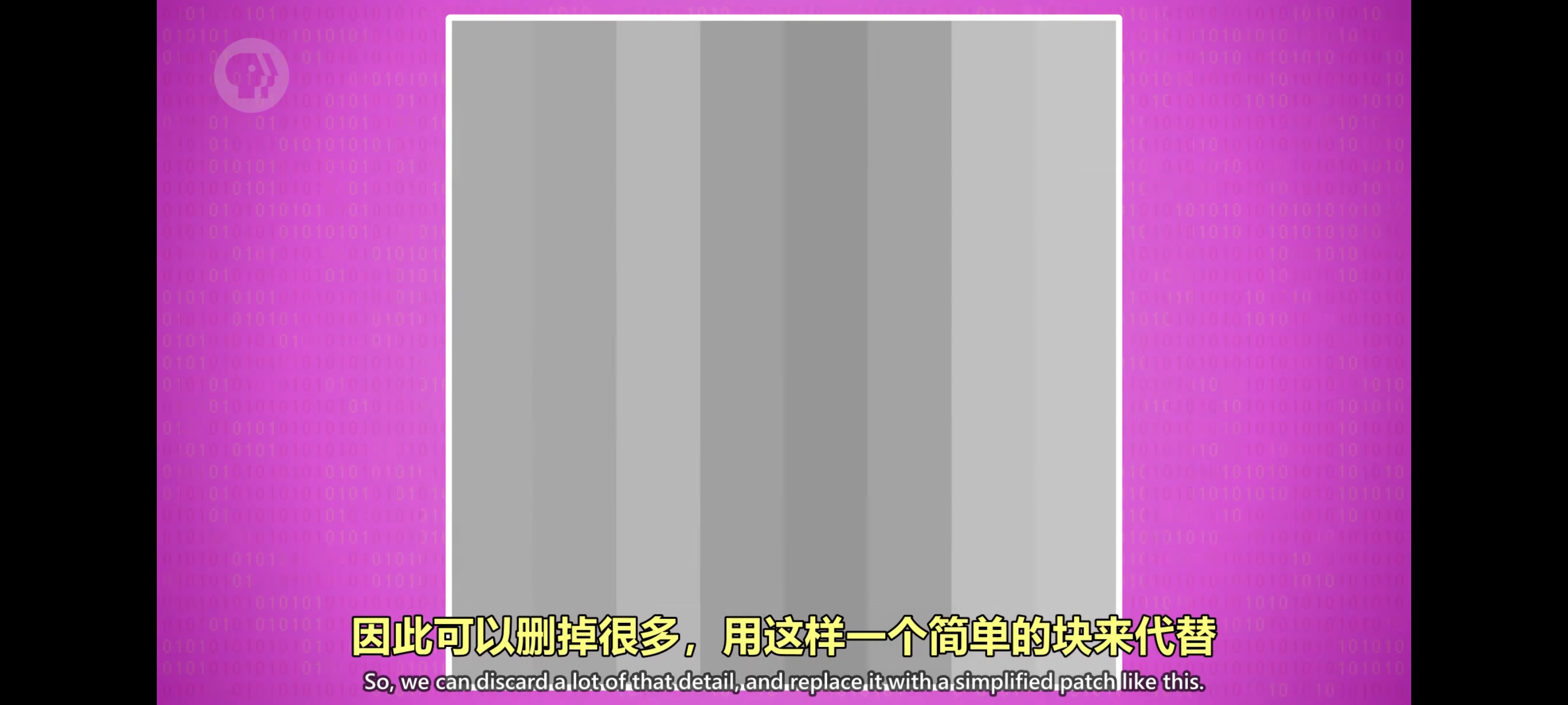 对所有 8x8 块做一样的操作,图片依然可以认出是什么,只是更粗糙一些。这个例子比较极端,进行了高度压缩,通常可以取得平衡,图片看起来差不多,但文件小不少。视频只是一长串连续图片,所以图片的很多方面也适用于视频,但视频可以做一些小技巧,因为帧和帧之间很多像素一样。比如背景,视频里不用每一帧都存这些像素,这叫时间冗余。我们可以利用了帧和帧之间的相似性,只存变了的部分,这比存所有像素更有效率。更高级的视频压缩格式会更进一步,找出帧和帧之间相似的补丁,然后用简单效果实现,比如移动和旋转,变亮和变暗。视频压缩器识别到相似性时,会用一个或多个补丁代表相似物体,然后帧之间直接移动这些补丁,所以你看到的不是实时的物体。
